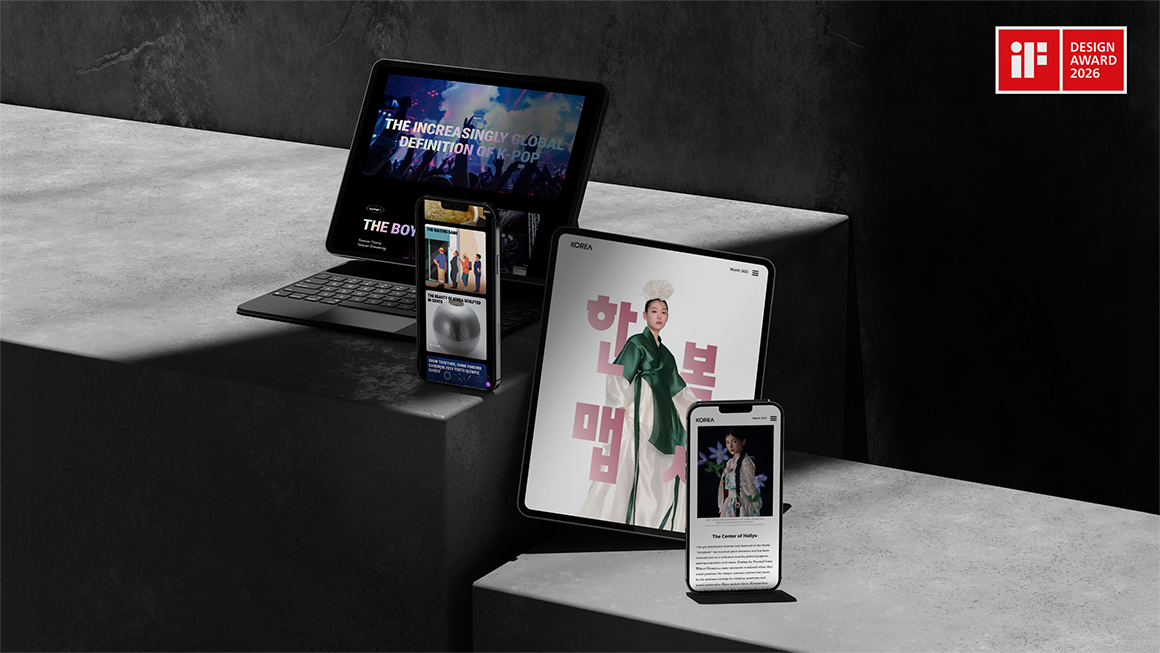 ȫĿ¹Â´ÏÄÉÀ̼ÇÁî°¡ Á¦ÀÛÇÑ ¿µ¹®ÀâÁö ¡®KOREA¡¯°¡ ¼¼°èÀû ±ÇÀ§ÀÇ µðÀÚÀÎ °ø¸ðÀü 'iF µðÀÚÀÎ ¾î¿öµå 2026(International Forum Design Award 2026) ¿¡¼ º»»óÀ» ¼ö»óÇß´Ù. ¡®KOREA¡®´Â Çѱ¹ ¹®È¿Í ¿¹¼ú µî ±¹°¡À̹ÌÁö¸¦ ¼¼·ÃµÈ ¾ð¾î·Î ÀçÇØ¼®ÇØ Àü¼¼°è¿¡ Çѱ¹ÀÇ ¿ì¼ö¼ºÀ» ¾Ë¸®´Â ¿µ¹® ÀâÁö·Î ¹®ÈüÀ°°ü±¤ºÎ¿¡¼ ¹ßÇàÇϰí ÀÖ´Ù.