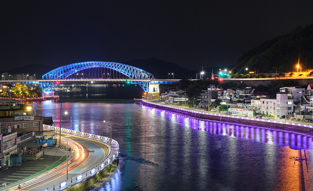 »ï°¢Çü ±×¹° ¸ð¾çÀÇ ¾ÆÄ¡Æ®·¯½º °ø¹ýÀ¸·Î ¸¸µé¾îÁø Å뿵´ë±³´Â Åõ±¤µîÀ» ¼³Ä¡ÇØ ¹ãÀÌ µÇ¸é ´õ¿í È·ÁÇÏ°Ô ºû³´Ù. Å뿵´ë±³°¡ ³»·Á´Ùº¸ÀÌ´Â ·çÇÁž Ä«Æä·Î °¡ ¾ÆÀ̽º¾Æ¸Þ¸®Ä«³ë¸¦ ¸¶½Ã¸ç Æí¾ÈÇÏ°í ¿©À¯·Î¿î ½Ã°£À» Áñ°å´Ù. °¨¹Ì·Î¿î ºûÀÌ °¨½Ñ Å뿵´ë±³¿Í µµ½ÉÀÇ ºÒºûµéÀº ¿©ÇàÀÇ ¿©¿îÀ» ´õ ±í¾îÁö°Ô ¸¸µå´Â µíÇß´Ù.