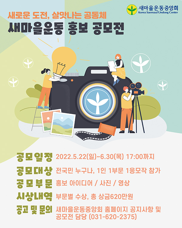»õ¸¶À»¿îµ¿ È«º¸ ¾ÆÀ̵ð¾î, »çÁø, ¿µ»óÄÜÅÙÃ÷ ¼¼ ºÎ¹®À¸·Î ³ª´² ÁøÇàÇÑ °ø¸ðÀüÀº »õ¸¶À»¿îµ¿¿¡ ´ëÇÑ °ü½ÉÀ» »ó±â½ÃŰ°í ¡®ÇÔ²² Àß »ç´Â °øµ¿Ã¼¡¯¸¦ ¸¸µé¾î°¡±â À§ÇÑ ¼¼´ë °£ ¼ÒÅë°ú °ø°¨ ºÐÀ§±â¸¦ Á¶¼ºÇϰíÀÚ ¸¶·ÃµÆ´Ù.