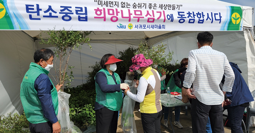 Á¦ÁÖ ¼±ÍÆ÷½Ã»õ¸¶À»È¸(ȸÀå º¯ºÀ³²)´Â Áö³ 6¿ù 4ÀÏ Á¦ÁÖ¿ùµåÄŰæ±âÀå ±¤Àå¿¡¼ ½Ã¹Îµé¿¡°Ô ²É´ó°³ª¹«¿Í »ê¼ö±¹ °¢ 500°³¸¦ ³ª´®ÇÏ´Â ¡®Åº¼ÒÁ߸³ Èñ¸Á³ª¹« ³ª´®»ç¾÷¡¯À» Àü°³Çß´Ù.