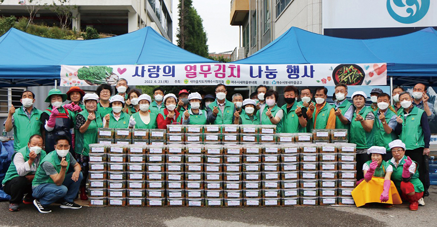 Àü³² ¿©¼ö½ÃÇùÀÇȸ(ȸÀå À̱âÀü)¿Í ºÎ³àȸ(ȸÀå ±Ç¿µ³²)´Â Áö³ 6¿ù 23ÀÏ ½Ã»õ¸¶À»È¸°ü¿¡¼ ¡®»ç¶ûÀÇ ¿¹«±èÄ¡ ³ª´®¡¯»ç¾÷À» °³ÃÖÇØ °ü³» Ȧ¸ö ¾î¸£½Å, ´Ù¹®È°¡Á¤, ºÏÇÑÀÌÅ»ÁֹΠµî ¼Ò¿ÜÀÌ¿ô°ú Ãë¾à°èÃþ¿¡ Àü´ÞÇß´Ù.
