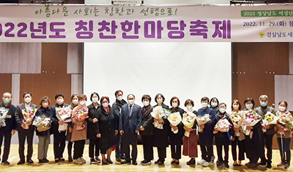 °æ»ó³²µµ»õ¸¶À»ºÎ³àȸ(ȸÀå ÇÑÁ¤¿©)´Â Áö³ÇØ 11¿ù 29ÀÏ Ã¢¿øÄÁº¥¼Ç¼¾ÅÍ¿¡¼ ±èÇö¹Ì °æ³²µµÃ» ¿©¼ºÁ¤Ã¥°úÀå°ú ÀÌÇå¼ø °æ³²µµÃ» ¿©¼ºÆ¯º¸, ¾ÈÈ¿µ µµ»õ¸¶À»È¸Àå ¹× È¸¿ø´ÜüÀåÀ» ºñ·ÔÇÑ ÄªÂùÁÖÀΰø 80¿© ¸íÀÌ Âü¼®ÇÑ °¡¿îµ¥ ¡®2022³âµµ ĪÂùÇѸ¶´çÃàÁ¦¡¯¸¦ °³ÃÖÇß´Ù. À̹ø ÃàÁ¦¿¡¼´Â ½Ã±ºº° ÀÚ¶û½º·¯¿î ĪÂùÁÖÀΰøÀ¸·Î ÃßõµÈ â¿ø½Ã Â÷¼ºÃµ ¾¾¸¦ ºñ·ÔÇÑ 21¸í¿¡°Ô µµºÎ³àȸÀåÀÇ ÄªÂùÆÐ¿Í ±â³äǰÀ» Àü´ÞÇÏ°í °Ý·ÁÇß´Ù.