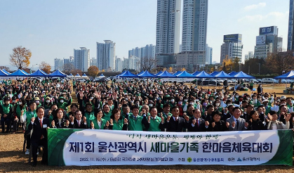 ¿ï»ê±¤¿ª½Ã»õ¸¶À»È¸(ȸÀå Á¤´ë½Ä)´Â Áö³ÇØ 11¿ù 16ÀÏ ¿ï»ê ÅÂȰ±¹°¡Á¤¿ø ÀÏ¿ø¿¡¼ ¡®Á¦1ȸ ¿ï»ê±¤¿ª½Ã »õ¸¶À»°¡Á· ÇѸ¶À½Ã¼À°´ëȸ¡¯¸¦ °³ÃÖÇß´Ù. À̳¯ ´ëȸ´Â Áö³ ÇÑ ÇØ µ¿¾È »õ¸¶À»¿îµ¿ ÃßÁø¼º°ú¸¦ Á¾ÇÕ °á»êÇÏ°í ¸ð¹üÀûÀ¸·Î ºÀ»çÇÑ Àϼ± »õ¸¶À»ÁöµµÀÚÀÇ ³ë°í¸¦ °Ý·ÁÇϱâ À§ÇØ ¸¶·ÃµÆ´Ù. 1ºÎ Çà»ç´Â ³Å¸°ø¿¬À» ½ÃÀÛÀ¸·Î À¯°øÀÚ Ç¥Ã¢, ´ëȸ»ç, Ãà»ç, »õ¸¶À»³ë·¡ Á¦Ã¢ µîÀÌ ÁøÇàµÆÀ¸¸ç 2ºÎ Çà»ç¿¡¼´Â ¡®´Ù½Ã »õ¸¶À»¿îµ¿, ¼¼°è¿Í ÇÔ²²¡¯ ÃßÁøÀ» À§ÇÑ °á¼Ó·Â °ÈÀÇ Ã¼À°Çà»ç·Î ÃßÁøµÆ´Ù.
