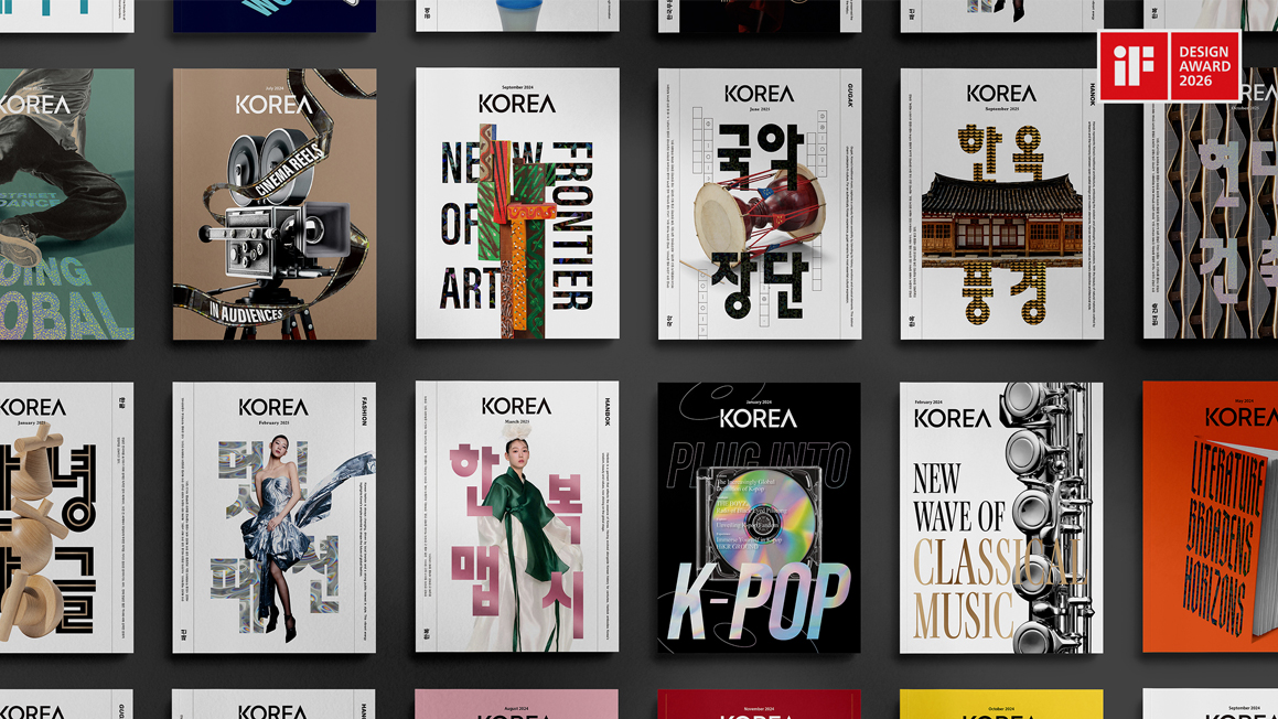 ȫĿ¹Â´ÏÄÉÀ̼ÇÁî°¡ Á¦ÀÛÇÑ ¿µ¹®ÀâÁö ¡®KOREA¡¯°¡ ¼¼°èÀû ±ÇÀ§ÀÇ µðÀÚÀÎ °ø¸ðÀü 'iF µðÀÚÀÎ ¾î¿öµå 2026(International Forum Design Award 2026) ¿¡¼ º»»óÀ» ¼ö»óÇß´Ù. ¡®KOREA¡®´Â Çѱ¹ ¹®È¿Í ¿¹¼ú µî ±¹°¡À̹ÌÁö¸¦ ¼¼·ÃµÈ ¾ð¾î·Î ÀçÇØ¼®ÇØ Àü¼¼°è¿¡ Çѱ¹ÀÇ ¿ì¼ö¼ºÀ» ¾Ë¸®´Â ¿µ¹® ÀâÁö·Î ¹®ÈüÀ°°ü±¤ºÎ¿¡¼ ¹ßÇàÇϰí ÀÖ´Ù.