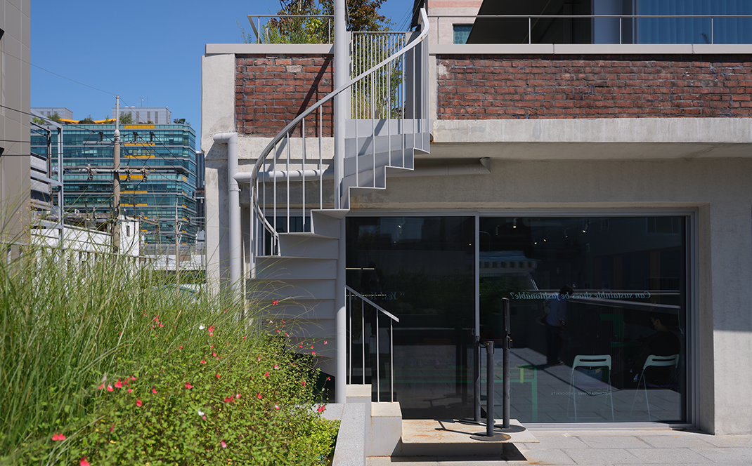 The concept of ¡°a story within a story¡± permeates not only the interior of the building but also carried through the foundation of the building. LCDC SEOUL consists of buildings A and B, a renovated factory, and a new building, which is building C. Each of the buildings, especially buildings A and B that are exposed to the outside, appears to be a different building. But once inside, the courtyard that completely envelops buildings A, B, and C gives the three building a sense of unity. In other words, the courtyard allows for the three buildings to merge into a single story.