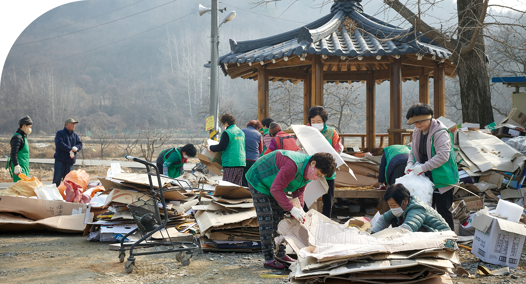 ¸¶À» Á¤ÀÚ ¿· »õ·Î ¸¸µç ºÐ¸®¼ö°ÅÀå¿¡¼µµ ÆóÁö¿Í °¢Á¾ ÀçȰ¿ëǰÀ» Á¾·ùº°·Î ºÐ¸®ÇÏ´À¶ó ¹Ù»ß ¿òÁ÷ÀδÙ. ¸¶À» ÁֹεéÀÇ ³ªÀ̰¡ ¸¹´Ù º¸´Ï, ¿îµ¿ »ï¾Æ ºÐ¸®¼ö°Å¸¦ ÇÒ ¼ö ÀÖµµ·Ï ³¯Â¥¸¦ ÁöÁ¤ÇØ ÇÔ²²Çϰí ÀÖ´Ù. ¼ø½Ä°£¿¡ °¡µæ ½×ÀÎ ÀçȰ¿ëǰÀº Æ®·°¿¡ ½Ç¾î °í¹°»ó¿¡ °¡Á®°¡ ÆÈ°í, À̸¦ ÅëÇØ ¾òÀº ¼öÀͱÝÀº ´Ù½Ã ¸¶À» ÁֹεéÀ» À§ÇØ »ç¿ëÇÑ´Ù.