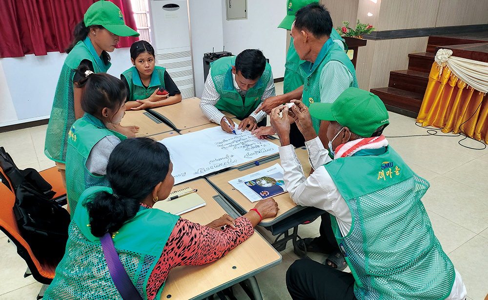 ¿¬¼ö °ÀǴ įº¸µð¾Æ ÇöÁö »çÁ¤¿¡ ¸ÂÃç ´Ù¾çÇÑ Ä¿¸®Å§·³À¸·Î ÁغñµÆ´Ù. Çѱ¹ÀÇ »õ¸¶À»¿îµ¿, º¸°ÇÀ§»ý°ú Áúº´¿¹¹æ, ½Ã¹ü¸¶À» °ü¸®, »õ¸¶À»ÁöµµÀÚÀÇ ¿ªÇÒ°ú ÇöÀåȰµ¿, ¸¶À»È¯°æ°³¼±, »õ¸¶À» ´Üü ¹× À§¿øÈ¸ ¼³¸³ µîÀ¸·Î »õ¸¶À»¿îµ¿¿¡ ´ëÇÑ ±âº»ÀûÀÎ ÀÌÇØµµ¸¦ ³ôÀÌ°í ½Ç¹« ±³À°À» ÅëÇØ º¸´Ù ÇöÀå°¨ ³ÑÄ¡´Â ¿¬¼ö¸¦ ÁøÇàÇß´Ù.