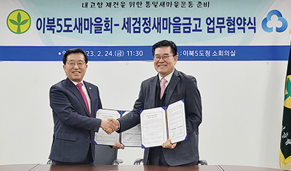 À̺Ï5µµ»õ¸¶À»È¸(ȸÀå Á¶¼º¿ø)´Â Áö³ 2¿ù 24ÀÏ ¼¿ï Á¾·Î±¸ À̺Ï5µµÃ» ¼ÒȸÀǽǿ¡¼ ¡®À̺Ï5µµ»õ¸¶À»È¸-¼¼°ËÁ¤»õ¸¶À»±Ý°í ¾÷¹«Çù¾à¡¯Ã¼°á½ÄÀ» °¡Á³´Ù. À̳¯ ¾ç ±â°üÀº ³»°íÇâ Àç°ÇÀ» À§ÇÑ ÅëÀÏ »õ¸¶À»¿îµ¿ °ü·Ã »ç¾÷ Çù·Â Áö¿ø°ú ź¼ÒÁ߸³ ½Çõ ½Ã¹Î±³À°°ú ½Çõ È®»êÀ» À§ÇÑ »ç¾÷, ±¹³»¿Ü »õ¸¶À»¿îµ¿ ºÀ»çȰµ¿ °ü·Ã ÇÁ·Î±×·¥ °øµ¿°³¹ß ¹× ¿î¿µ Áö¿øÀ» ¾à¼ÓÇß´Ù