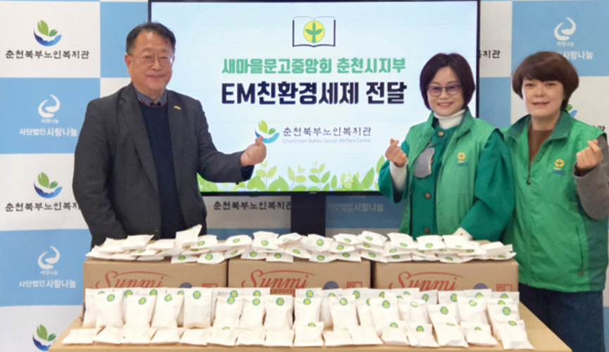 ¹®°í °¿ø Ãáõ½ÃÁöºÎ(ȸÀå ÀÌÈñ¼ø)´Â Áö³ 3¿ù 20ÀÏ Ãáõ º¹ºÎ³ëÀκ¹Áö°ü¿¡ ±âÈÄÀ§±â ´ëÀÀÀ» À§ÇÑ Ä£È¯°æ EM(À¯¿ë¹Ì»ý¹°±º)ÁÖ¹æºñ´©¸¦ Àü´ÞÇß´Ù.